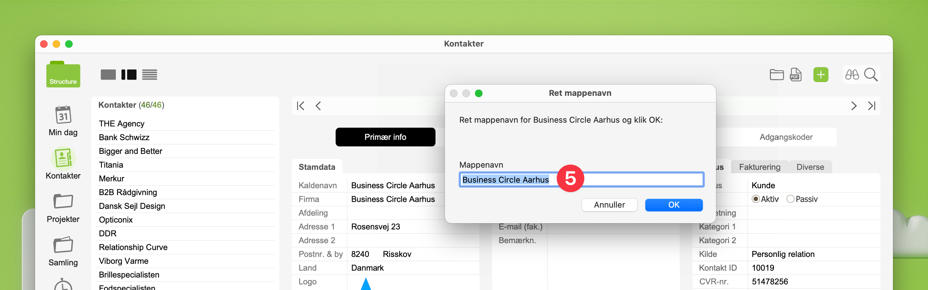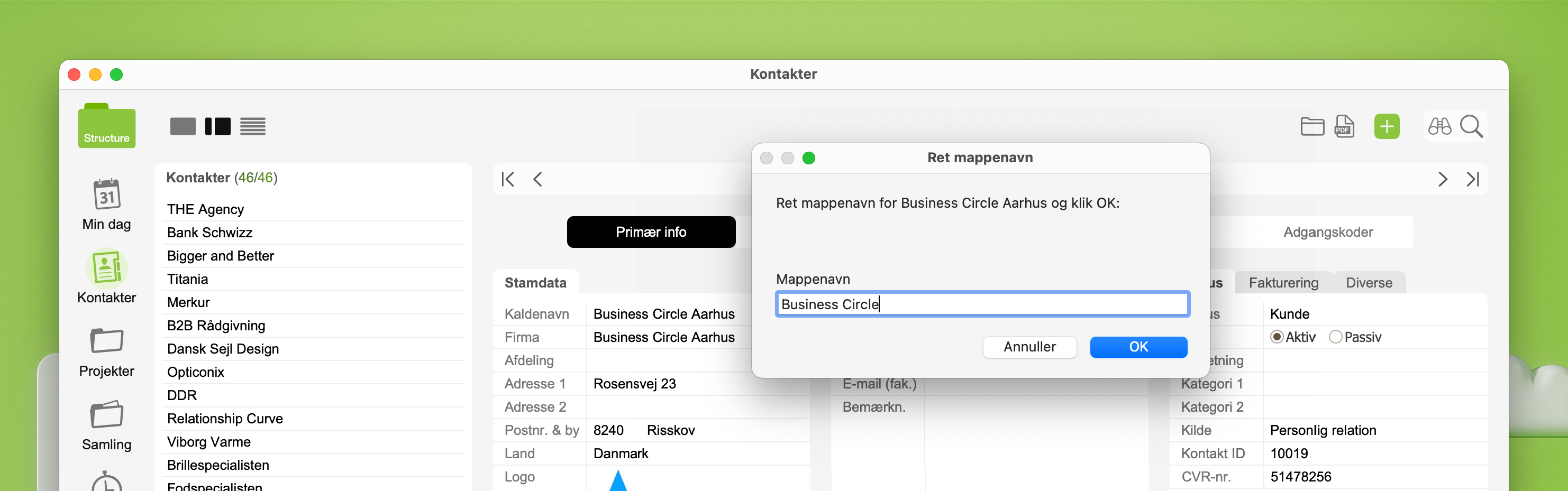 Hvis du vil ændre navnet på en kundemappe, så skal du gøre følgende:
